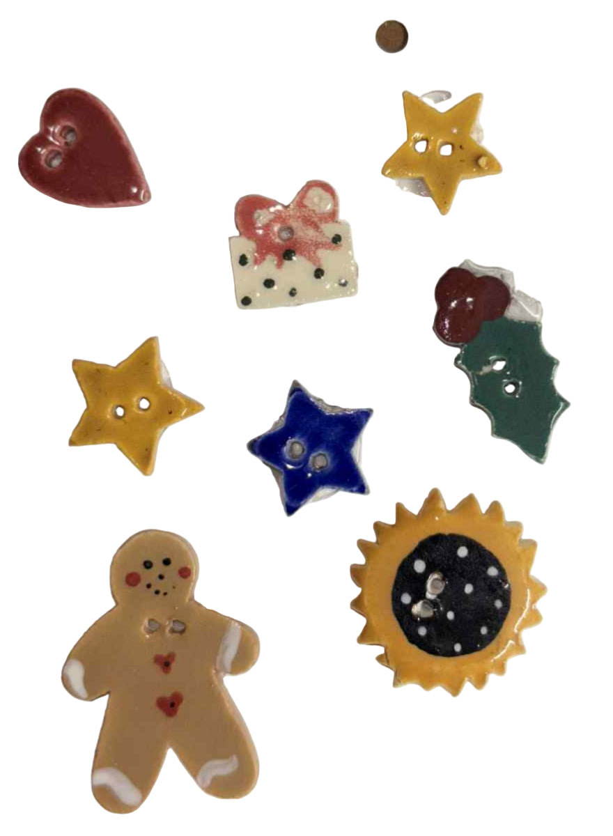 (48) Buttons Kiln Fired & Glaze Fired Pottery