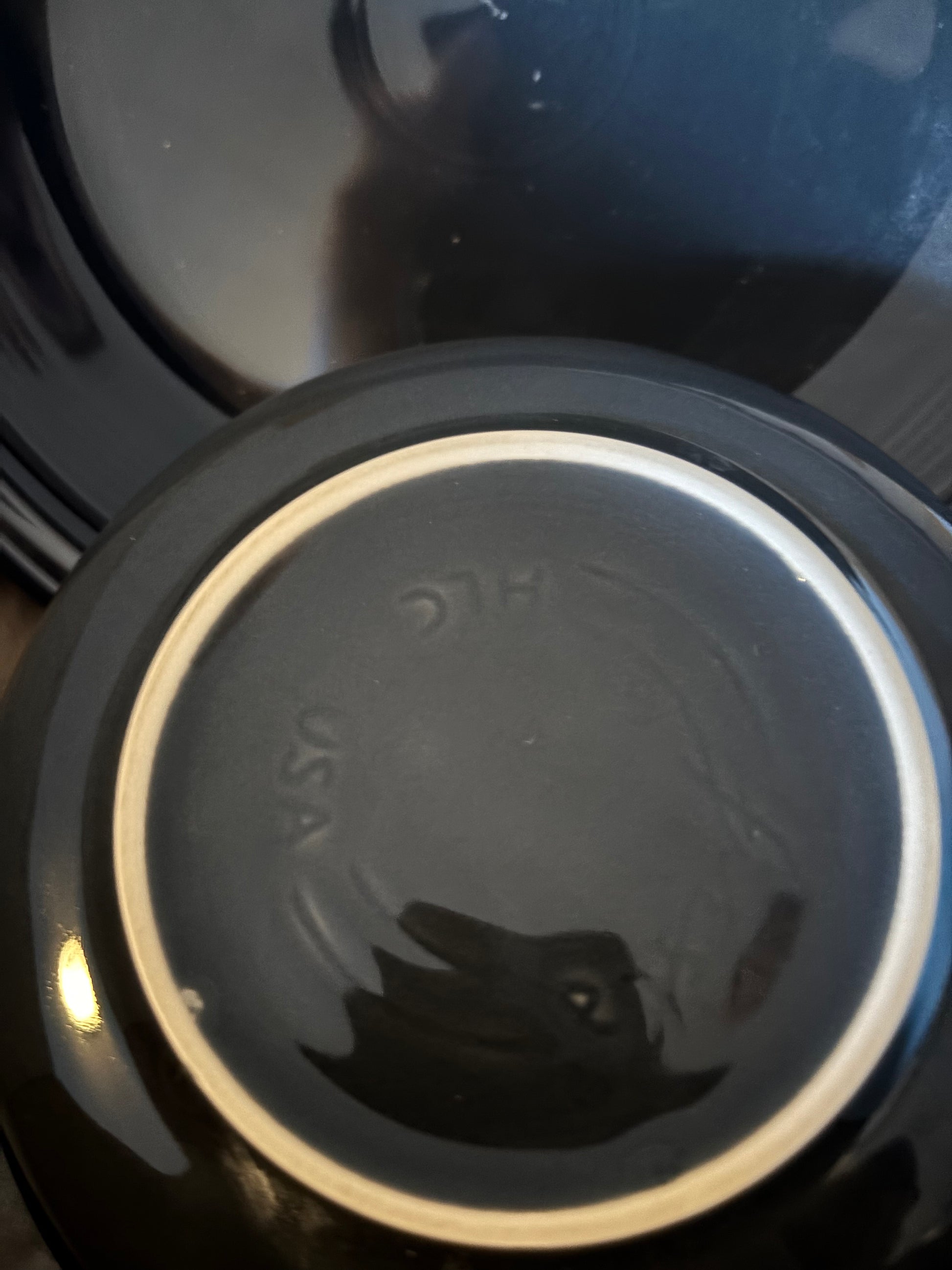 All pieces are in excellent condition with no chips, cracks, or glaze damage. The Slate glaze has a smooth satin-gloss finish that blends well with both modern and traditional table settings. Made in the USA by The Fiesta Tableware Company.